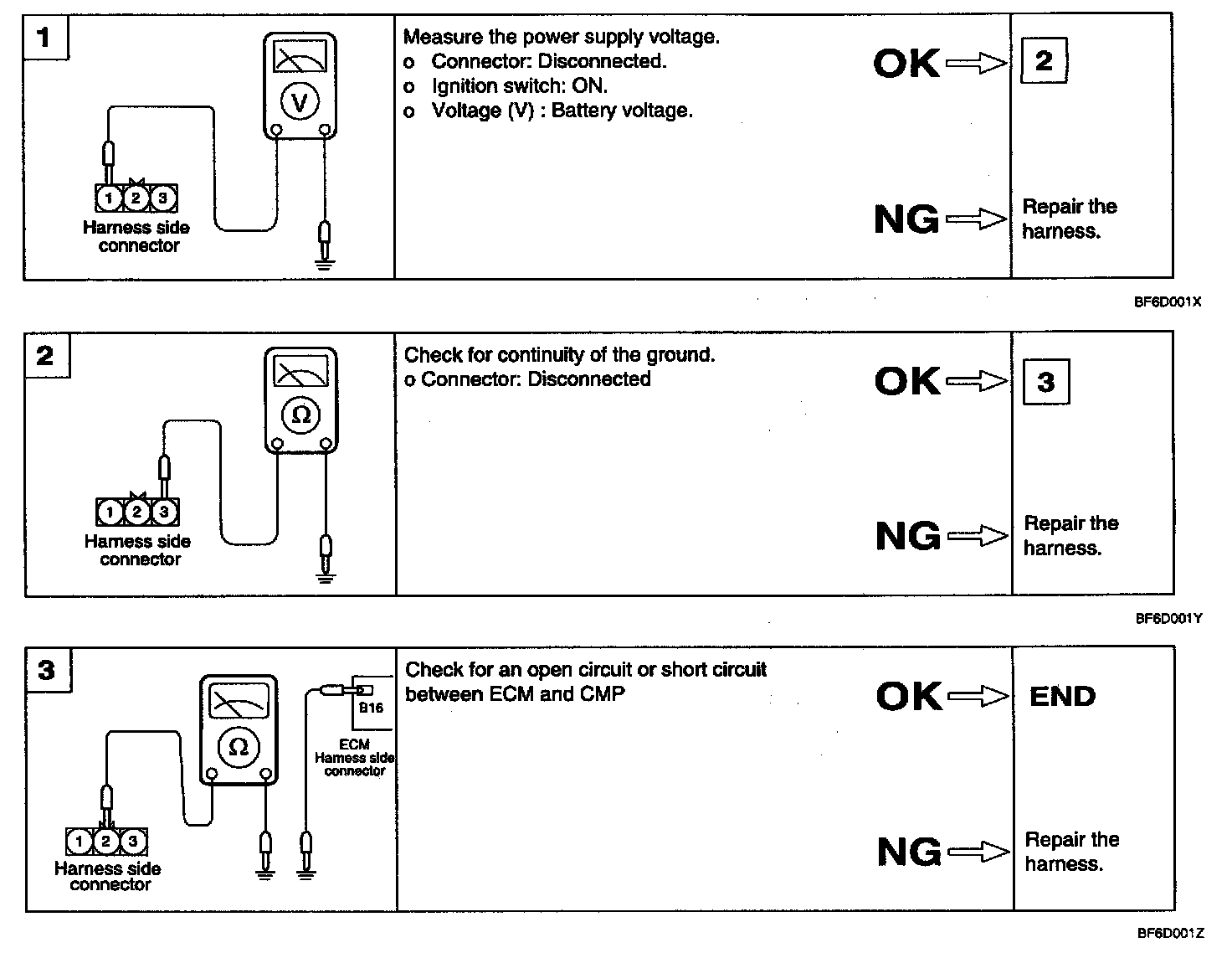 3. Check for the points as below if the crankshaft angle sensor indicates a value out of the specification though the engine is available of starting in idle.