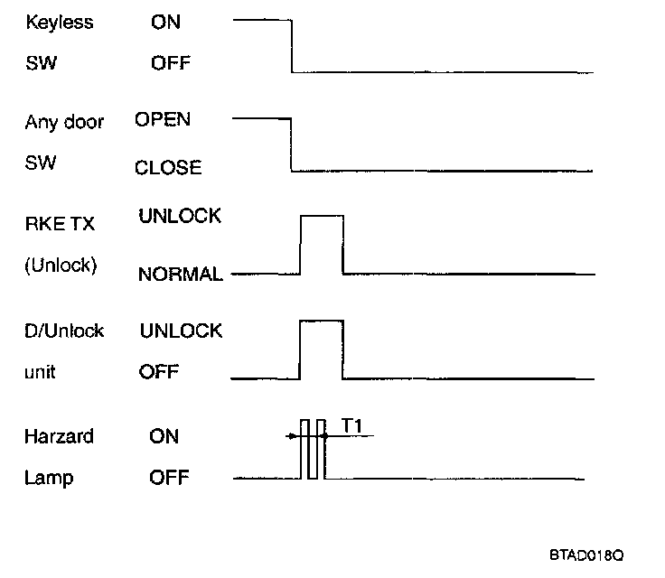 2. Remove the battery voltage and then check the operation of the keyless entry system.