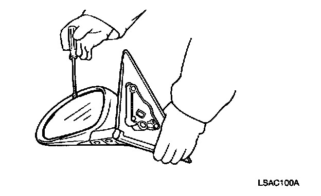 1. Insert flat bladed screwdriver between the outside rearview mirror holder and the mirror assembly.