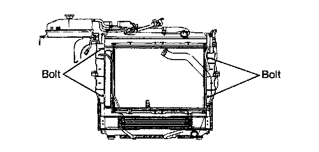 6. Remove the air conditioner condenser fixing bolts and radiator bracket fixing nuts.