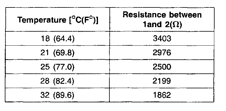 1. The air temperature sensor is located at the front of the engine radiator and detect ambient air temperature. It is a negative type thermistor; resistance will increase with lower temperature, and decrease with higher temperatures.