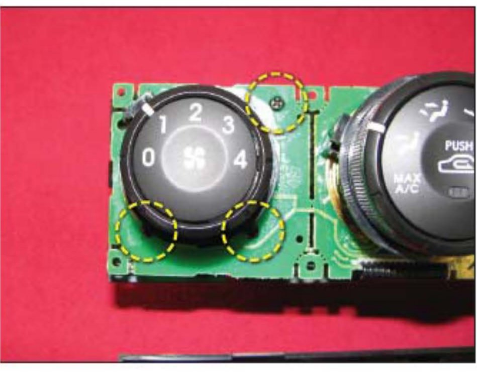 9. Remove three (3) screws from the blower switch control and remove blower switch from rear of circuit board.