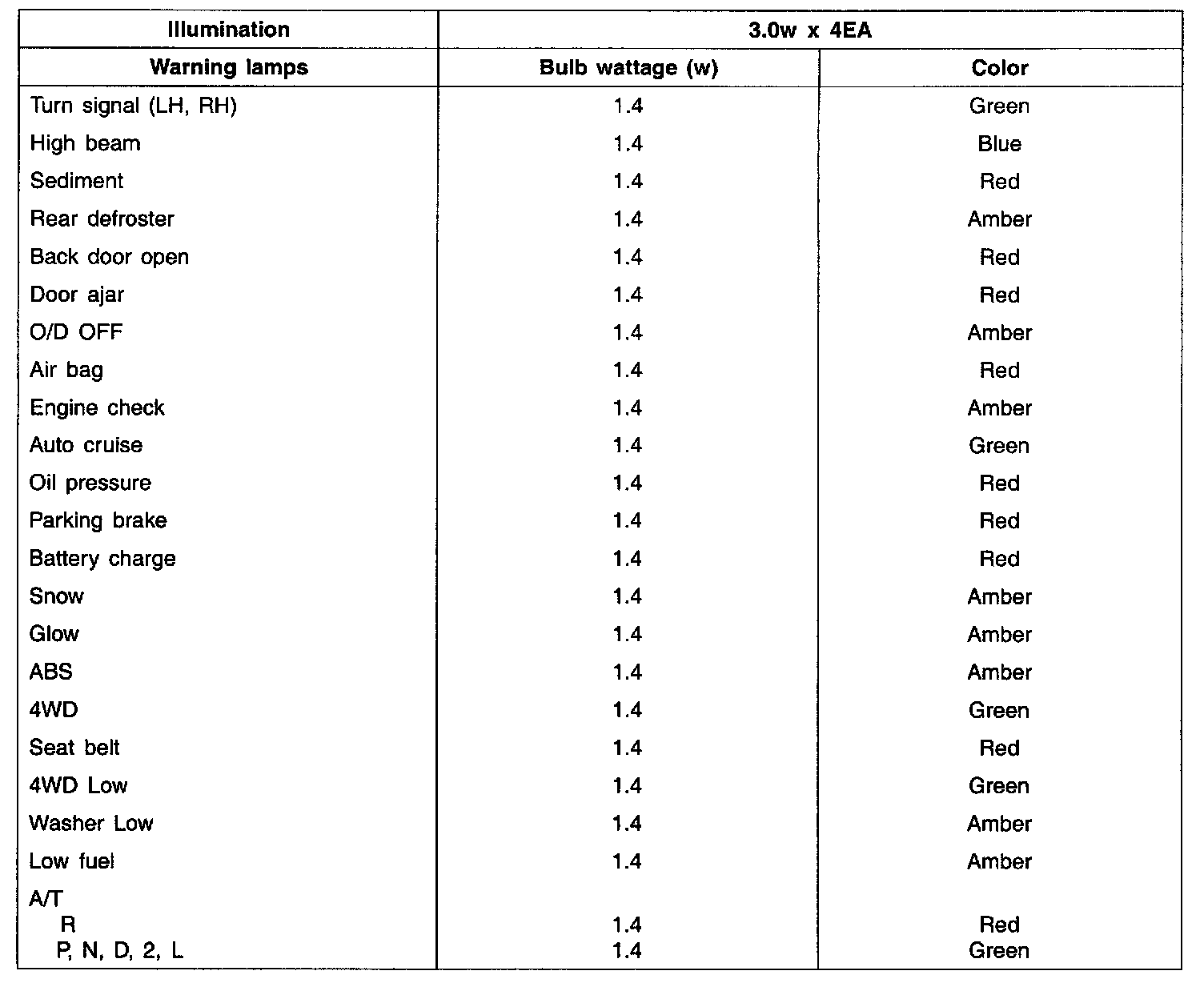 Instrument Panel, Gauges and Warning Indicators: Specifications