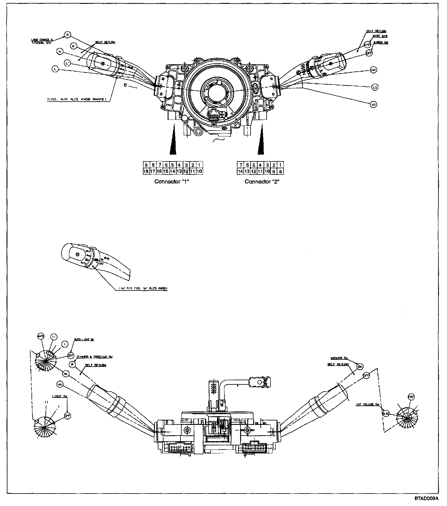 5. Remove the 3 screws holding the multi function switch and disconnect the connectors. Remove the multi function switch assembly.