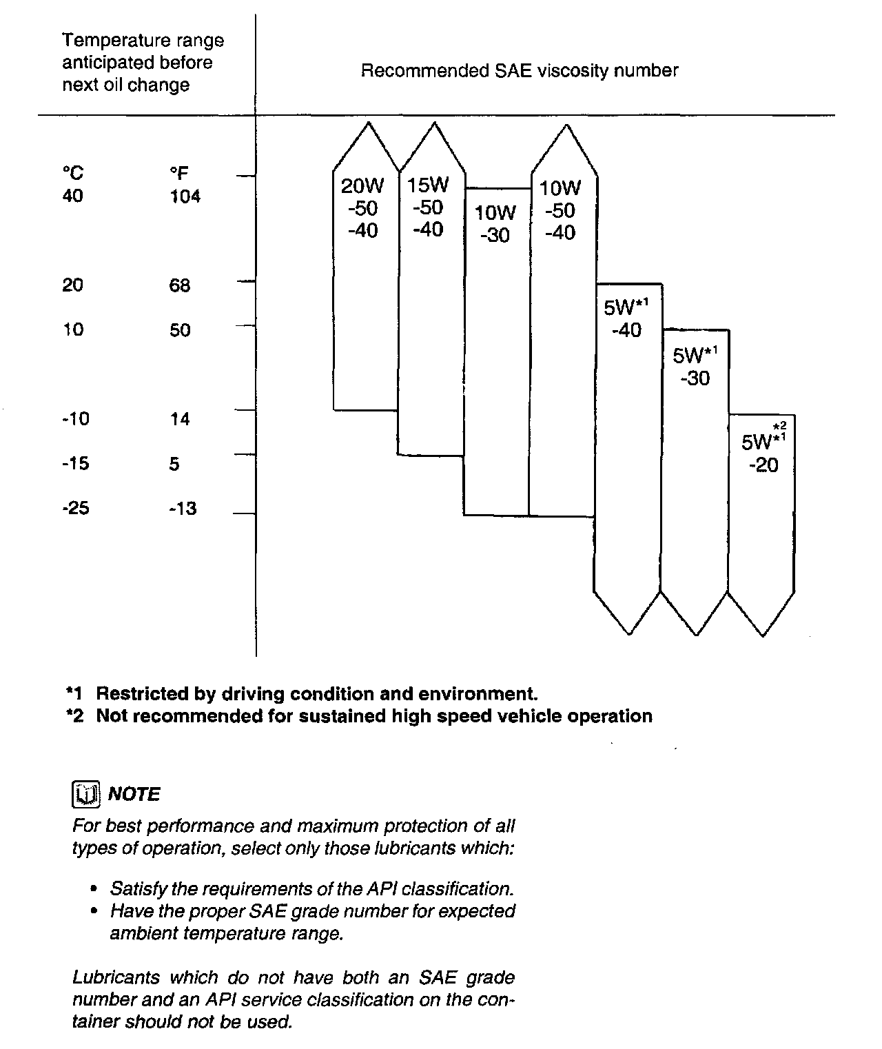 NOTE: For best performance and maximum protection of all types of operation, select only those lubricants which: