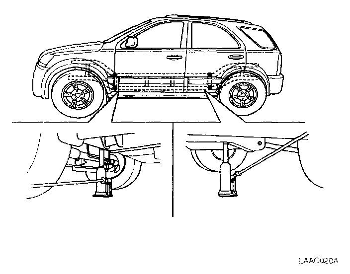 VEHICLE LIFT (2-SUPPORT TYPE) AND SAFETY STAND POSITIONSFRONT END