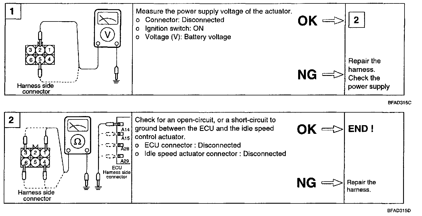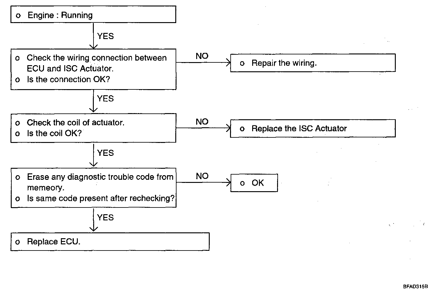 - Open or short circuit is observed in idle air control system when ignition switch is turned on.