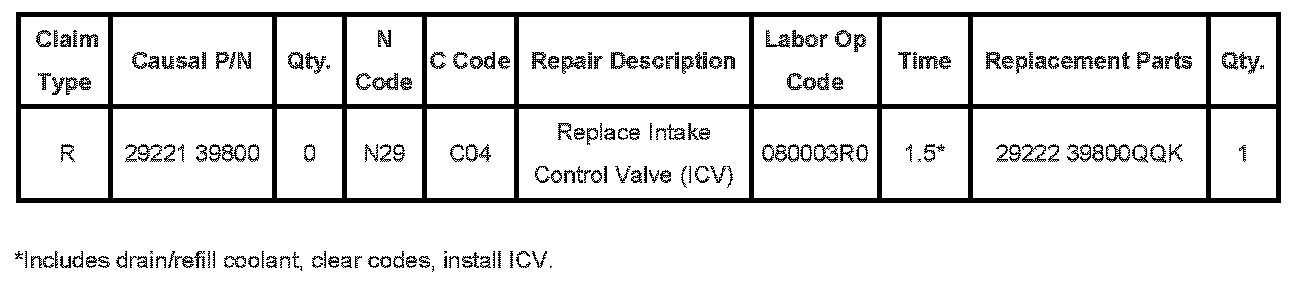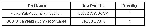 To correct this condition, Kia has outlined a service procedure to replace the induction control valve (ICV) with an improved version to prevent possible future engine damage. Changes and improvements were made on the throttle plate shaft bushing and sealing O-rings. Use ONLY the following part number (29222 39800QQK) to service the vehicle under this service campaign.