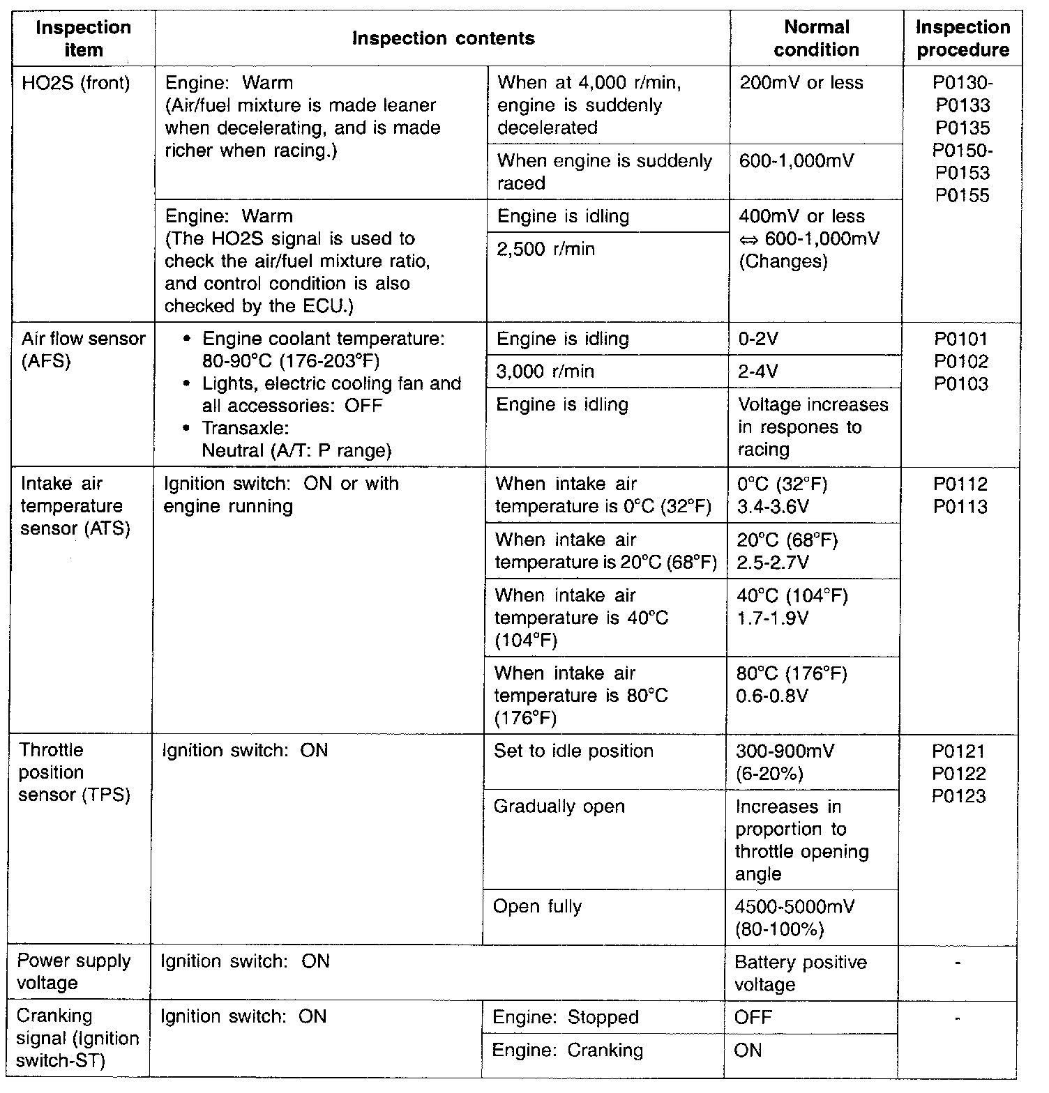 1. In a new vehicle [driven approximately 500 km (300 mile) or less], the mass air flow sensor output voltage is sometimes 10% higher than the standard voltage.