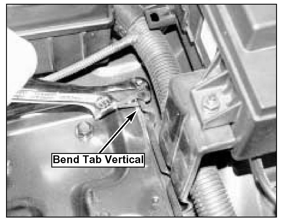 2. Using an adjustable wrench (crescent wrench), close the jaws of the wrench over the outer hold-down tabs, and bend the tabs to a vertical position.