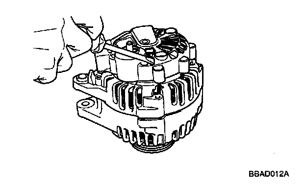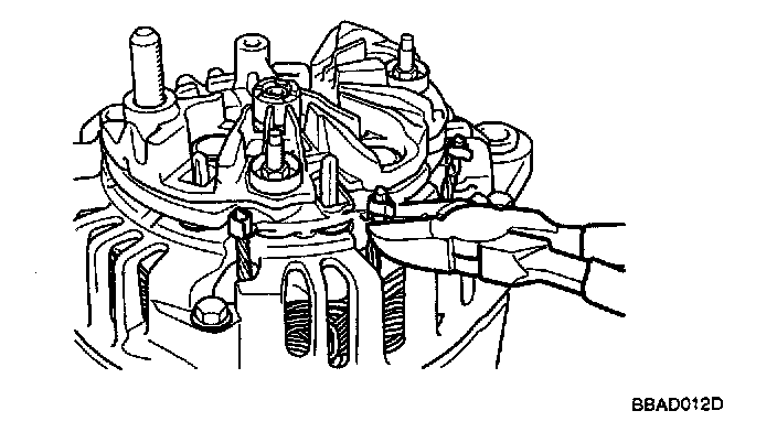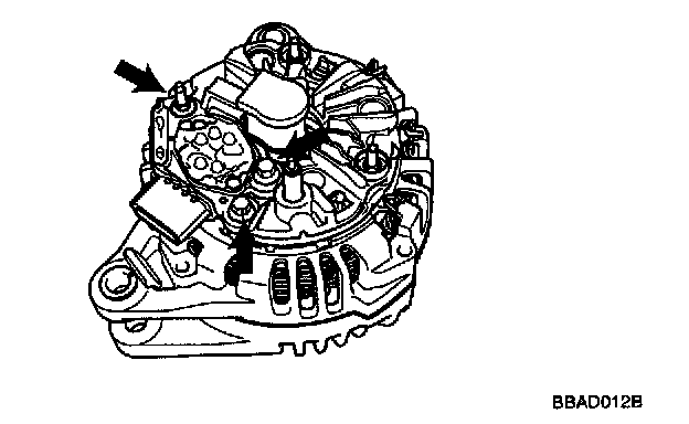 CAUTION: Cutting the stator coil lead line connecting to the rectifier may damage the generator because the rectifier and the stator coil lead line are soldered together. So, do not disassemble further.