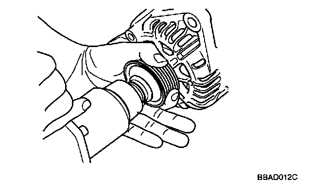 3. Remove the nut, pulley, and spacer.
