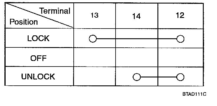 Check for continuity between the terminals. If continuity is not as specified in the table, replace the
