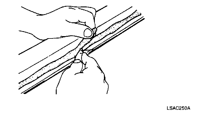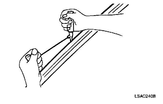 CAUTION: Be careful not to remove more adhesive than necessary, and also not to damage the paintwork on the body surface with the knife. If the paintwork is damaged, repair the damaged area with touch-up paint.