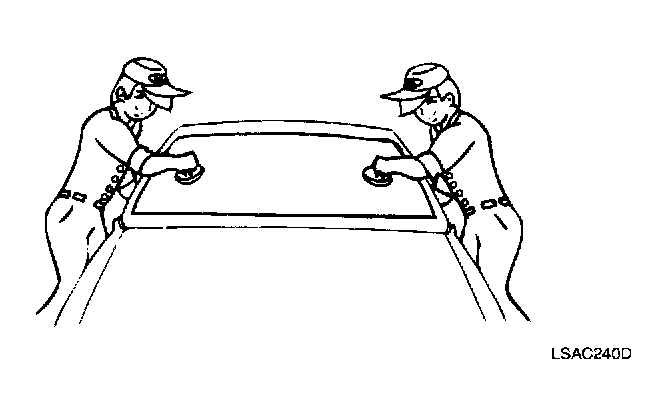 9. Using suction cups or the special tool, lower the glass over the opening, align it with the marks made in step 3 and set it down on the sealant.