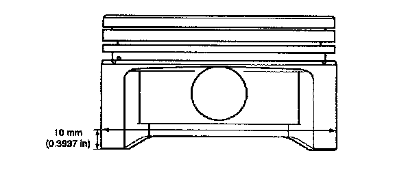 6. To rebore the cylinder bore to the oversize, maintain the specified clearance between the oversize piston and the bore and make sure that all used pistons are the same oversize. The standard measurement of the piston outside diameter is taken at a level of 10 mm (0.39 inch) above the bottom of the piston skirt and across the thrust faces.