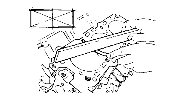 8. Check the top surface of the cylinder block for flatness. If the top surface exceeds the limit, grind to the minimum limit or replace.