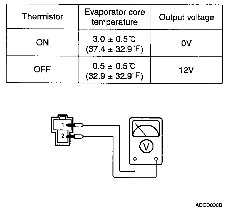 3. Using the multi-tester, check the output voltage between terminals 1 and 2 in the thermistor.
