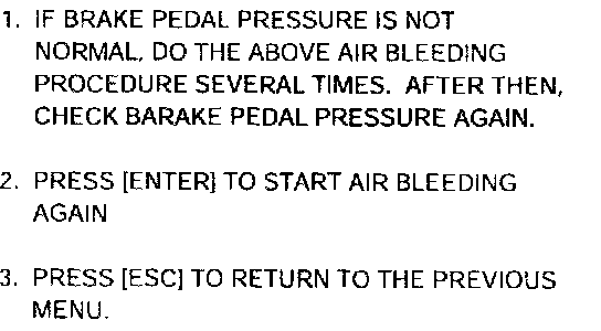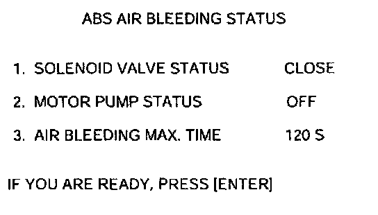 BLEEDING OF BRAKE SYSTEMThis procedure should be followed to ensure adequate bleeding of air and filling of the ABS unit, brake lines and master cylinder with brake fluid.