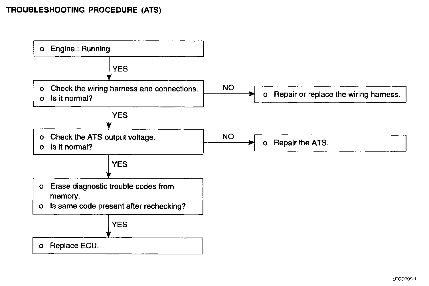 AIR FLOW SENSOR (AFS): MASS AIR FLOW (MAF) SENSOR & INTAKE AIR TEMPERATURE SENSOR (ATS)This hot film type Air Flow Sensor (AFS) is composed of a hot film sensor, housing and metering duct (hybrid sensor element). Mass air flow rate is measured because the change of the mass air flow rate causes a change in the amount of heat being transferred from the hot film probe surface to the air flow The air flow sensor generates a pulse so it repeatedly opens and closes between the 5 V voltage supplied from the ECU.