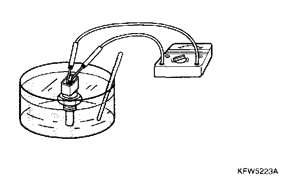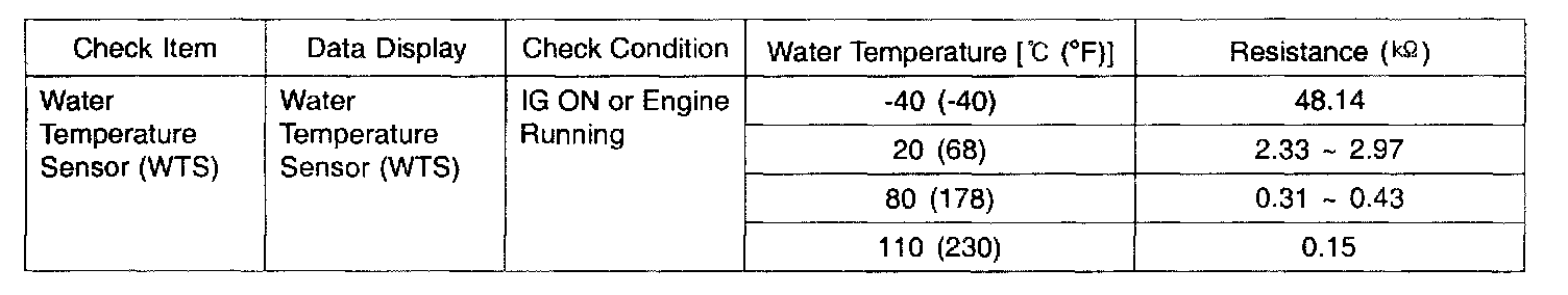 2. With the temperature sensing portion of Water Temperature Sensor (WTS) immersed in hot engine coolant, check the resistance.