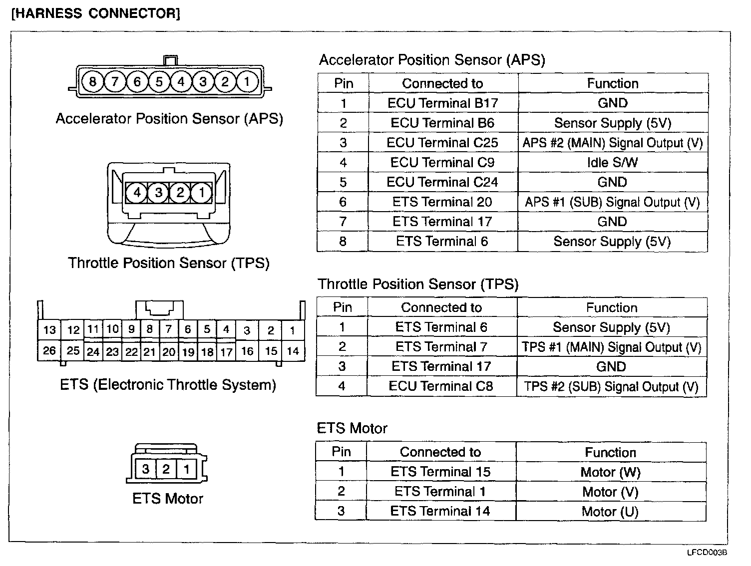 - In put signals from Accelerator Position Sensor (APS), Throttle Position Sensor (TPS), Ignition Switch and Serial Communication Line,