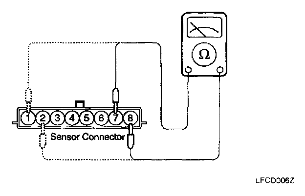 3. Measure resistance between terminal 3 (GND) and 2 (Sensor signal output).