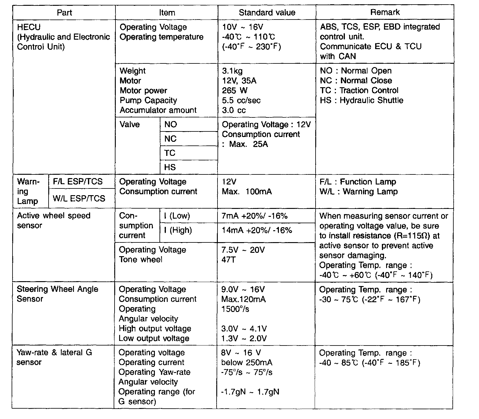 SPECIFICATIONS (ABS&TCS)