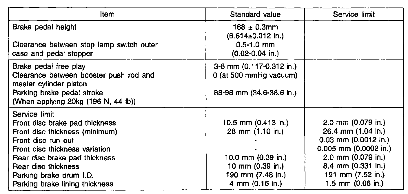 SPECIFICATIONS (BRAKE)