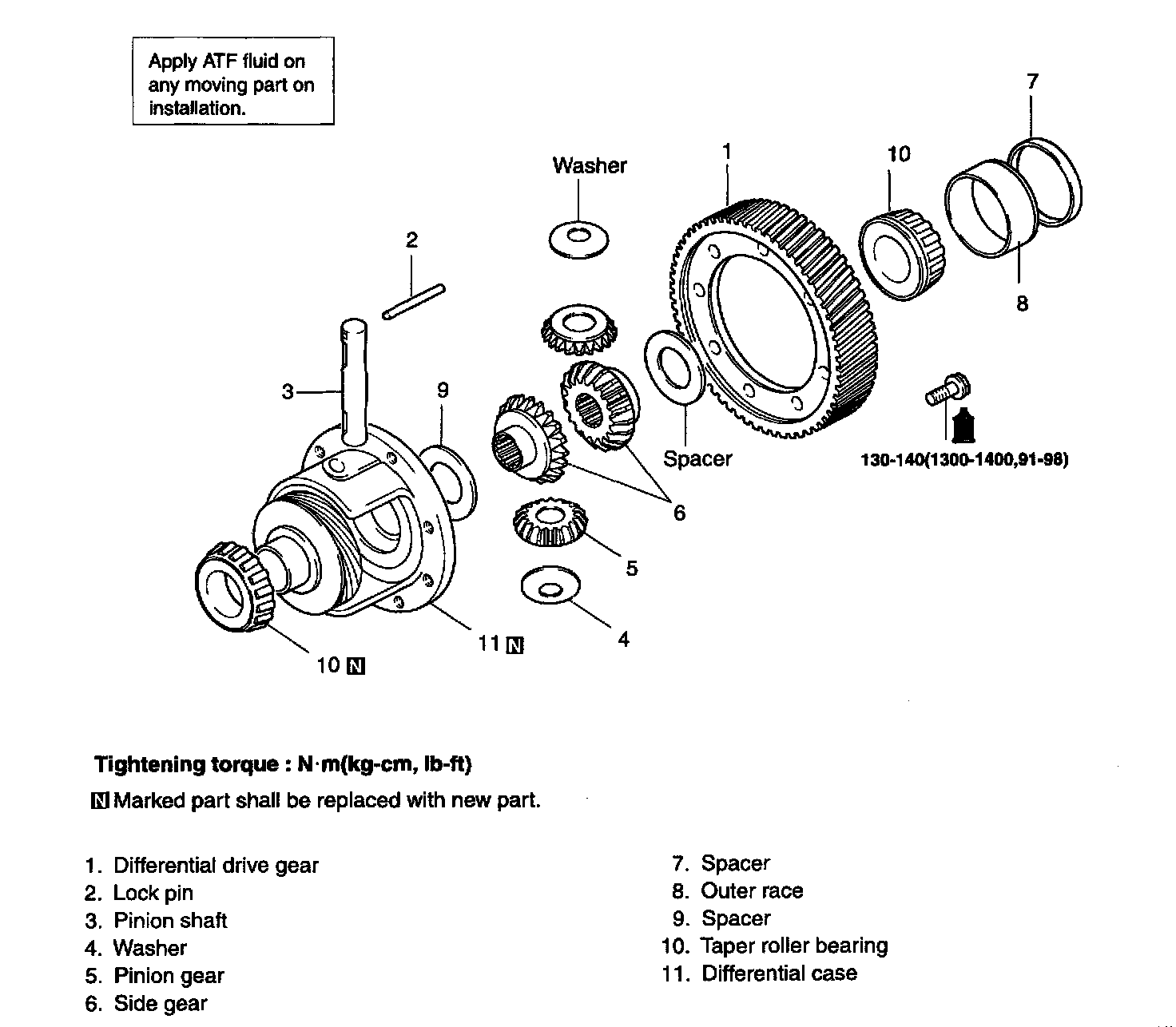 Tightening torque: 130 - 140 Nm (1300 - 1400 kg-cm, 91 - 98 ft. lbs.)