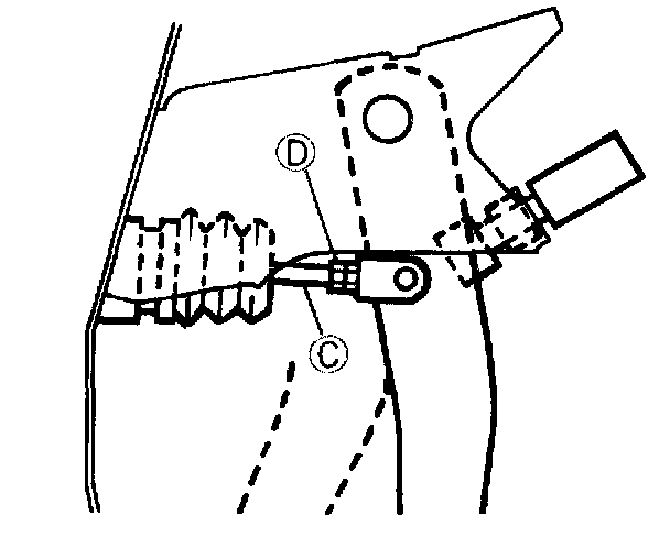 1. Loosen the locknut D and turn the rod C to adjust the free play.