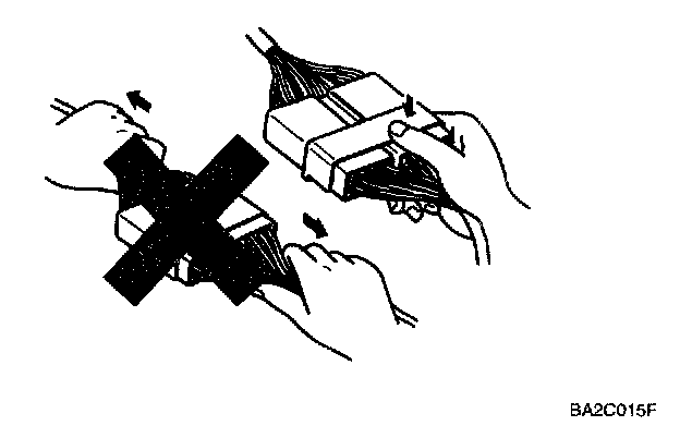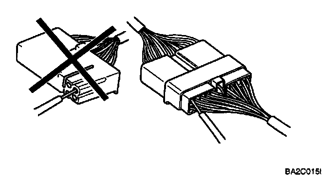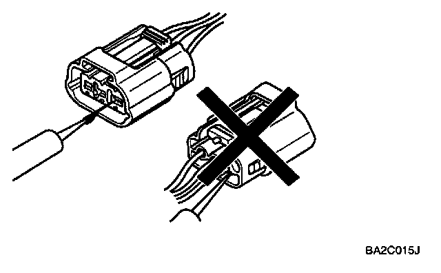 1. When a tester is used to check for continuity or to measure voltage, insert tester probe from wire harness side.