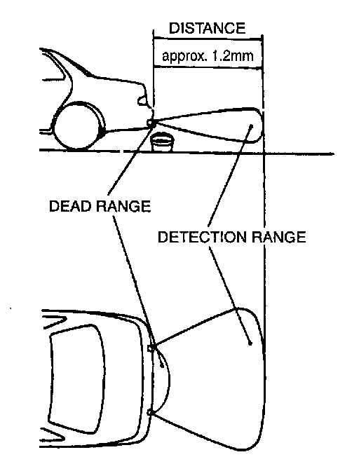 2. There is a blind spot below the bumper. Low objects (for example boundary barrier) may be detected from minimum 1.2 m away unable to detect at nearer.