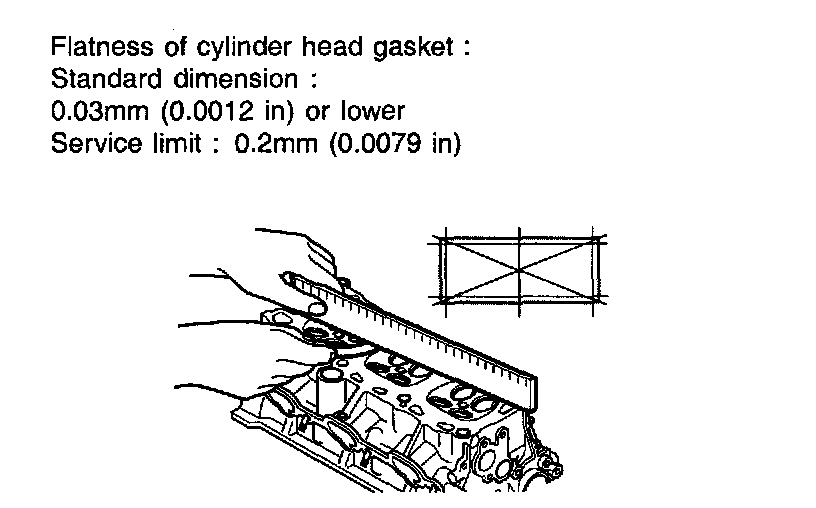 3. Check the cylinder head gasket surface for flatness with a straight edge and feeler.