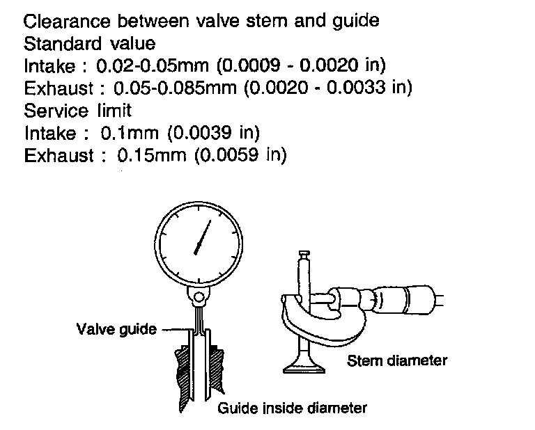 Check the valve stem-to-guide clearance. If the clearance exceeds the service limit, replace the valve guide with a new oversize guide.