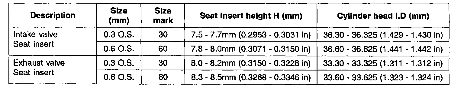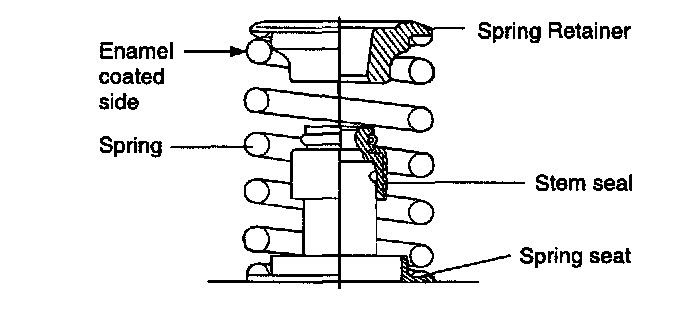 Incorrect seat installation can cause oil leakage through lower part of the valve guide. When the valve stem seal is removed due to missing of valve spring seat, the stem seal cannot be reused.