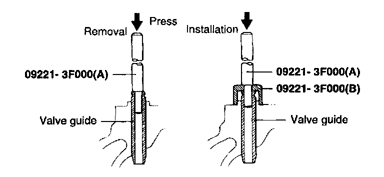 As the valve guide is tightly pressed in, replace the valve guide as following procedure, using the valve guide installer or appropriate tools.