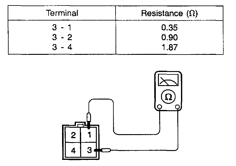 Check for continuity and resistance between terminals.