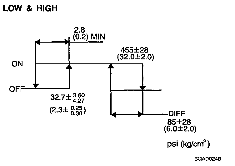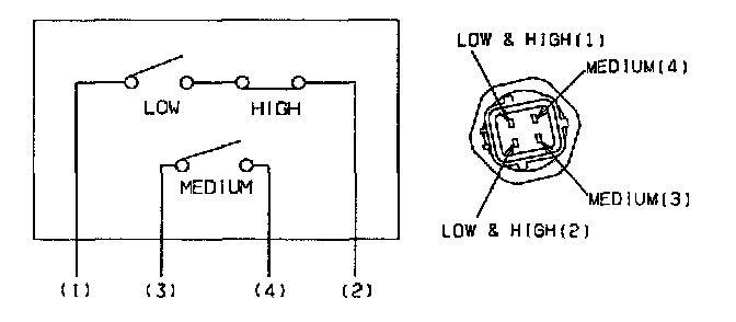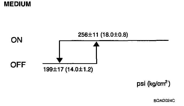 The triple switch is a combination of a medium switch as well as conventional low pressure and high pressure switches. The low pressure switch will be turned off to stop compressor operation if refrigerant pressure is low. The high pressure switch will be turned off to stop compressor operation if refrigerant pressure is too high. The medium switch will be turned on at medium level pressure to cool the A/C system operating radiator fan and condenser fan at high speed.