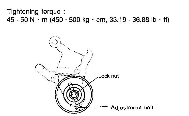 NOTE: When adjusting belt tension, adjust it only after tightening the bolt lightly not making tension pulley eccentric.