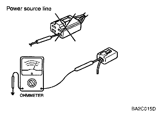 CAUTION: Do not connect a jumper wire from the power source line to a body ground. Such a connection may cause damage to harnesses or electronic components.