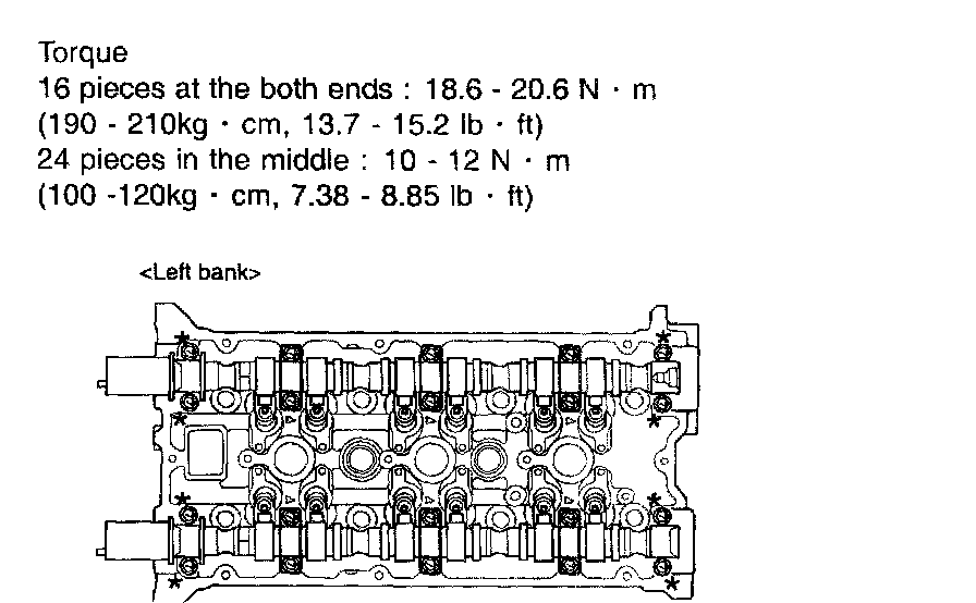 Tighten the bearing cap in two or three steps. Tighten it to the standard torque at the last stage.