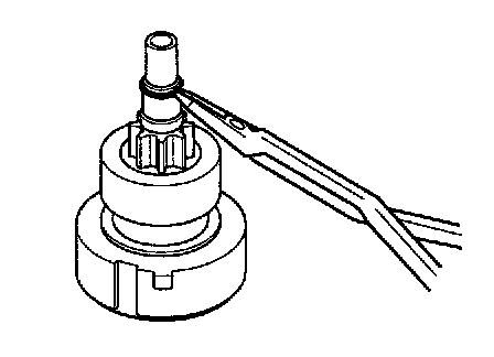 After removing the snap ring (using snap-ring pliers), remove the stop ring and the overrunning clutch.