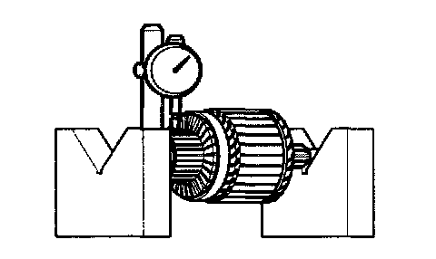 1. Place the armature on a pair of V-blocks, and check the run-out by using a dial gauge.
