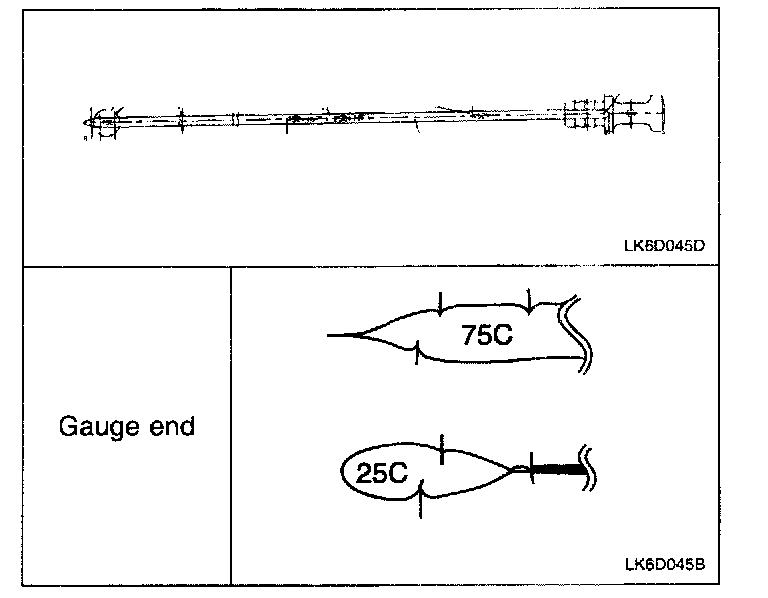 9. Run the vehicle to warm up ATF to operating temperature (70 - 80°C (158 - 176°F)) and check the ATF level again. ATF level shall be within the range marked HOT.