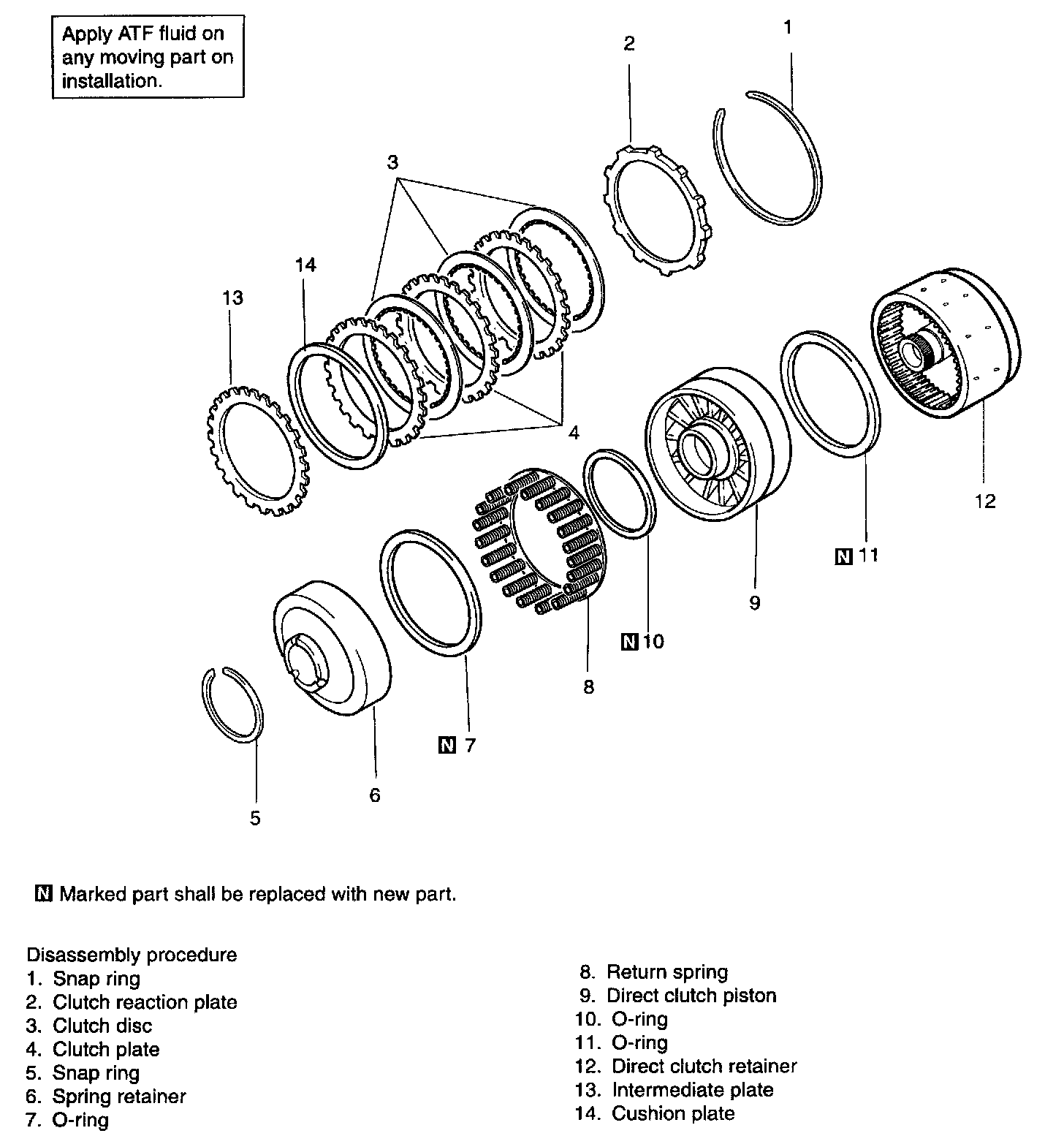 1. Remove the direct clutch snap ring.
