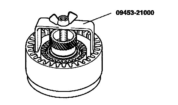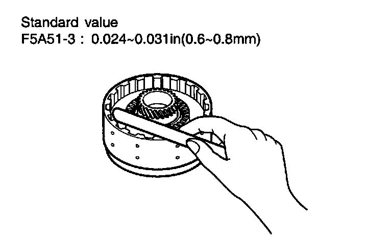 7. Applying force of 5kg on the direct clutch reaction plate, measure the gap with the snap ring using a gauge. If the measurement deviates from standard value, use an appropriate snap ring (12 sizes).