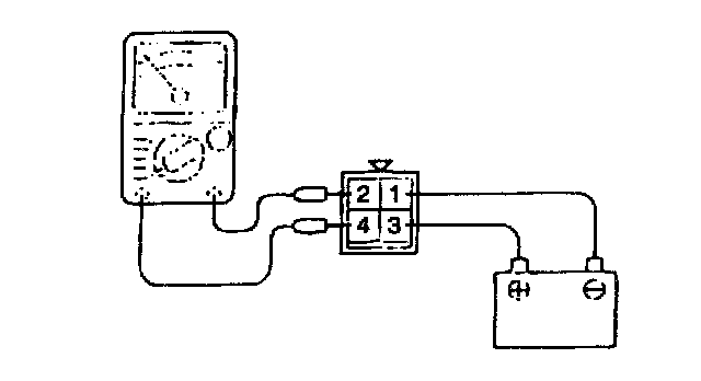 3. Check the continuity between terminal (2) and terminal (4) of the A/T control relay when the jumper wires are connected to and disconnected from the battery.