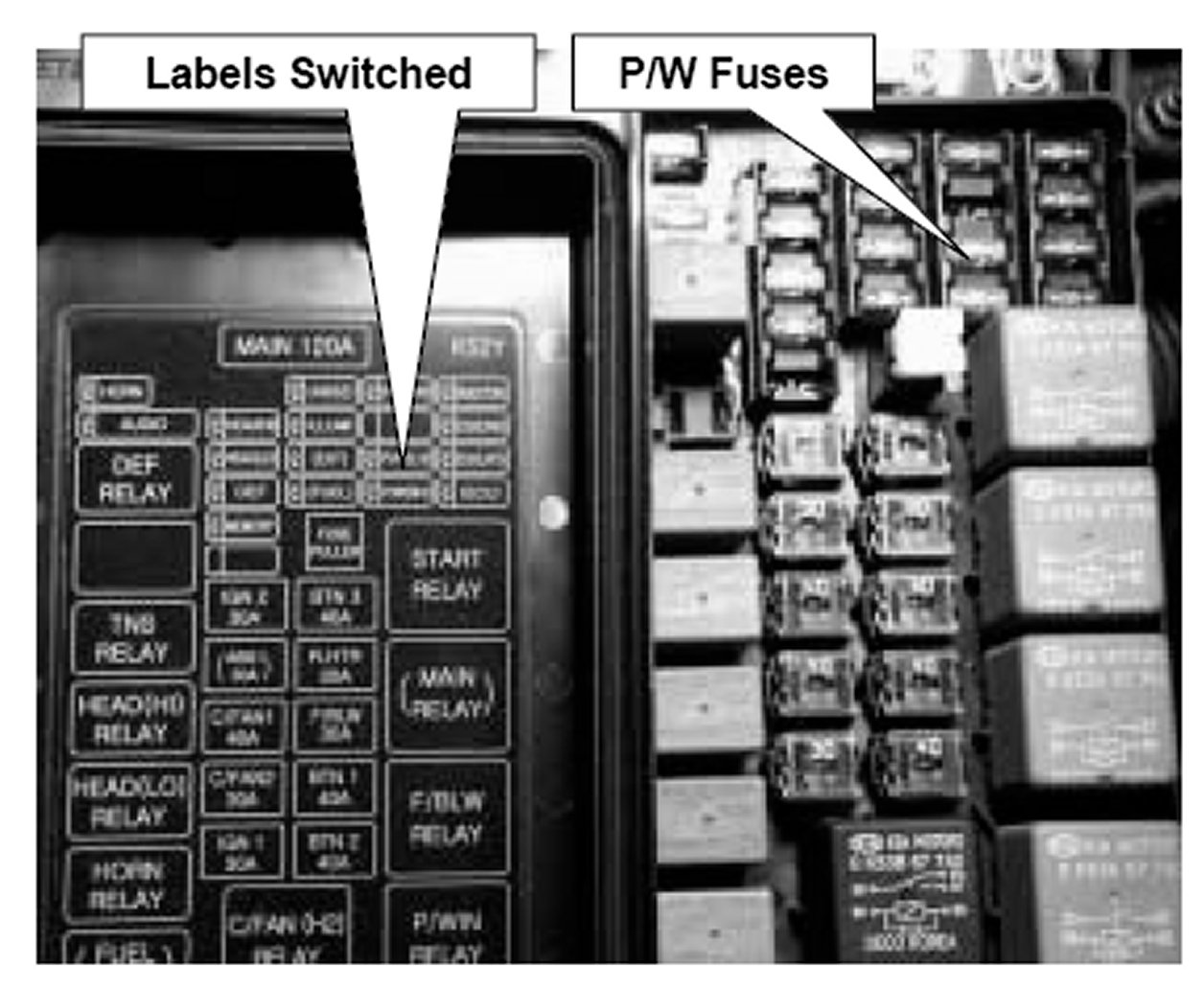 Heads up when servicing Sedona power windows. It has been discovered that the under hood fuse box has the right and left power window fuses mislabeled. The fuse labeled left runs the right side window and the fuse labeled right runs the left side window.