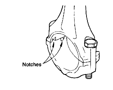 13. When a new connecting rod is installed, make sure that the notches for holding the bearing in place are on the same side.